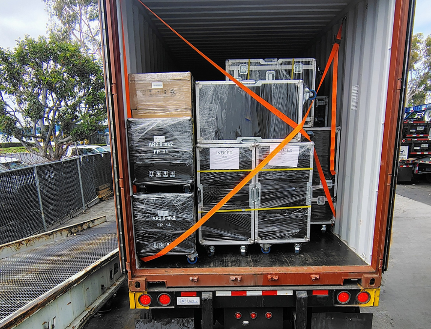 International shipment of digital LED display panels from the United Kingdom to Boston, supporting installation across MBTA and Amtrak transit stations.